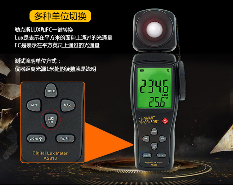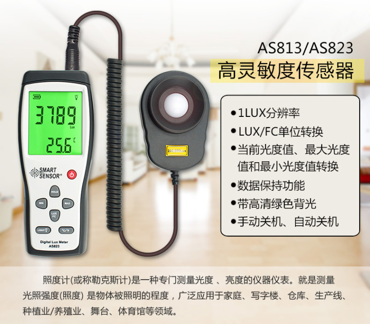 An illuminance meter (or lux meter) is an instrument that specializes in measuring luminosity and brightness. It is to measure the light intensity (illuminance) is the degree to which the object is illuminated, that is, the ratio of the luminous flux obtained on the surface of the object to the illuminated area. An illuminance meter is usually composed of a selenium photocell or a silicon photocell and a microammeter.
