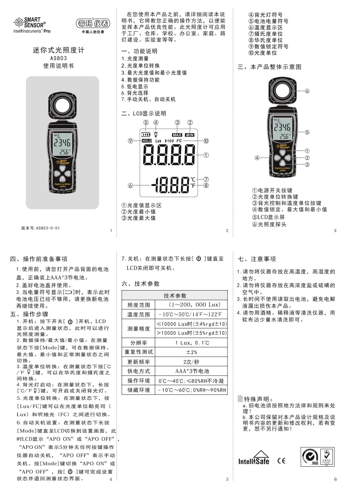 SMART SENSOR AS803 Mini luminometer Manual,OI