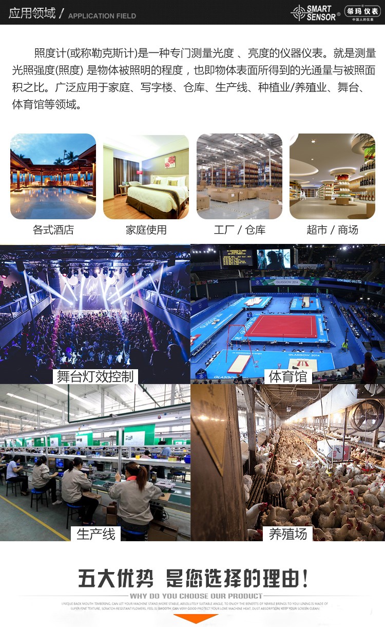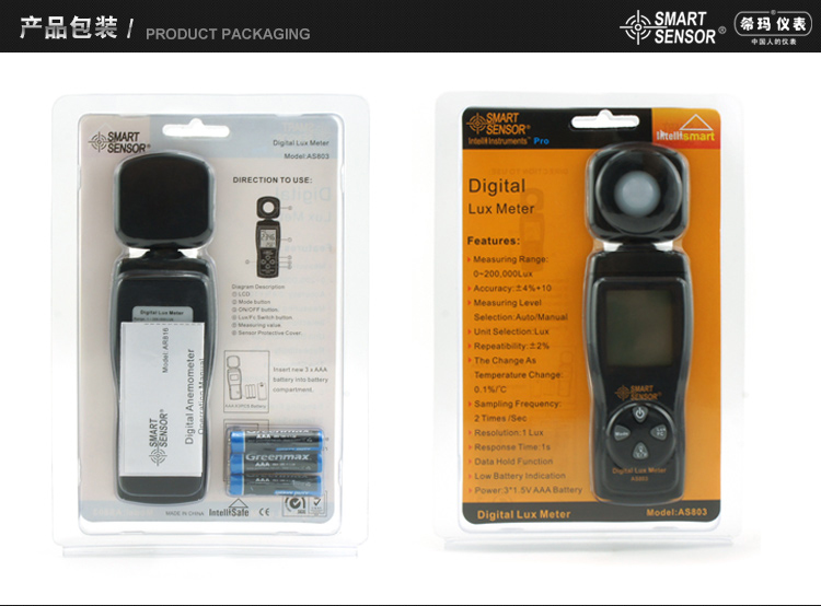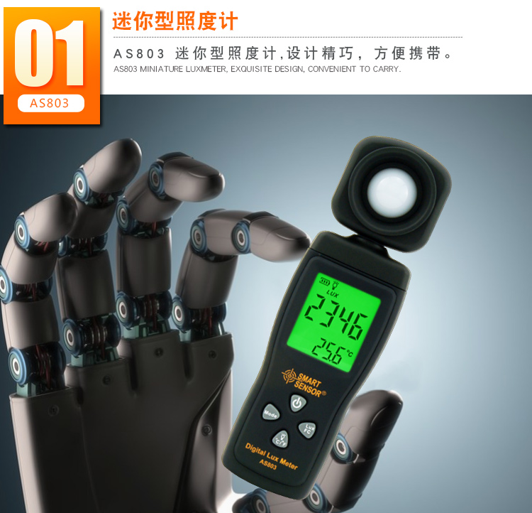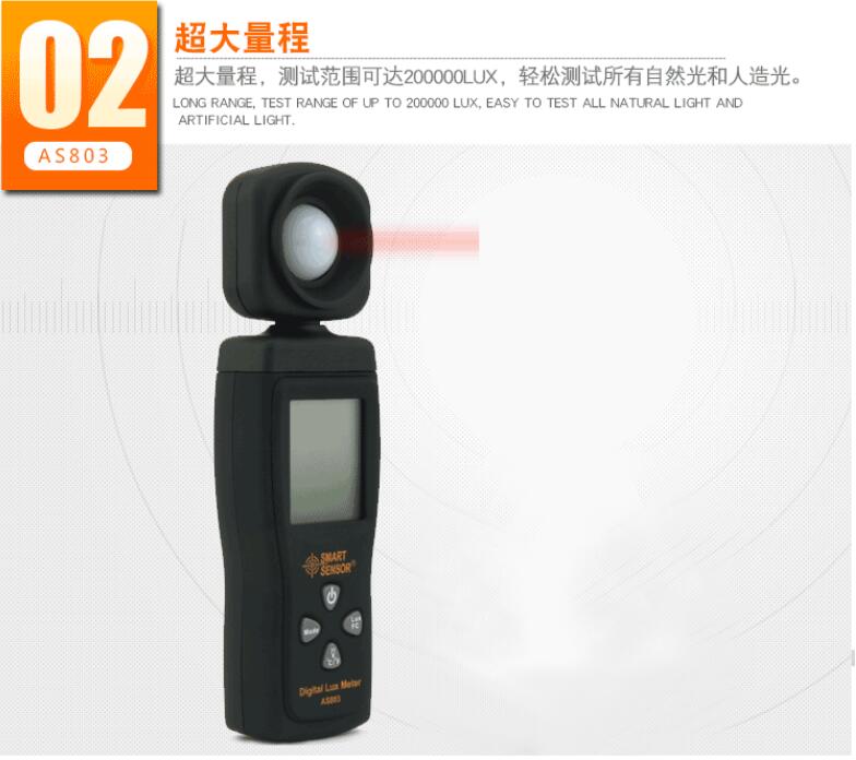 An illuminance meter (or lux meter) is an instrument that specializes in measuring luminosity and brightness. It is to measure the light intensity (illuminance) is the degree to which the object is illuminated, that is, the ratio of the luminous flux obtained on the surface of the object to the illuminated area. An illuminance meter is usually composed of a selenium photocell or a silicon photocell and a microammeter. AR813A has an illuminance measurement range of 100.000lux, a measurement accuracy of 4%, and 3 gears for manual selection.