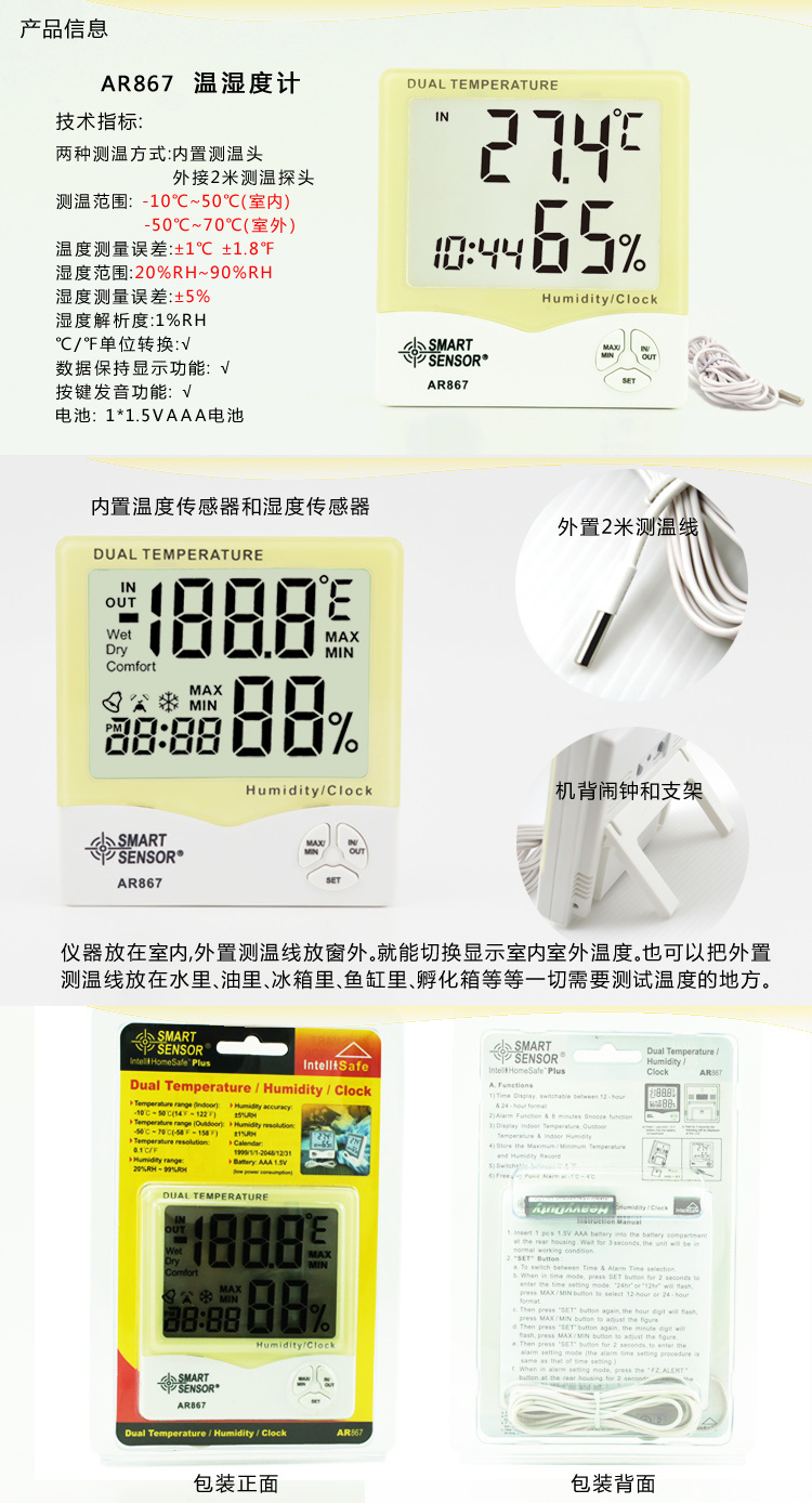 SMART SENSOR AR867 Digital ThermohygrometerDetails