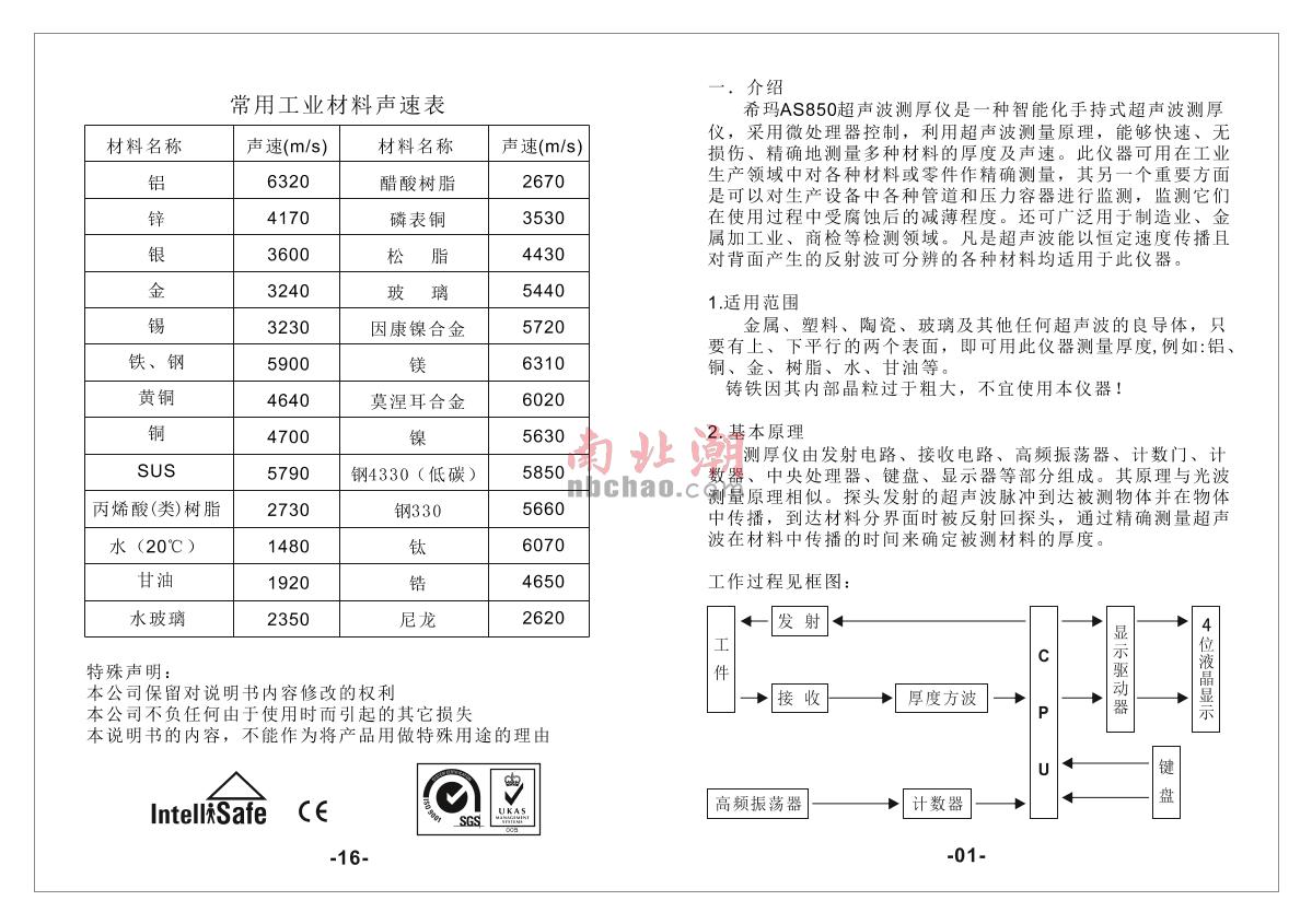 SMART SENSOR AS850 Ultrasonic Thickness Gauge Manual,OI