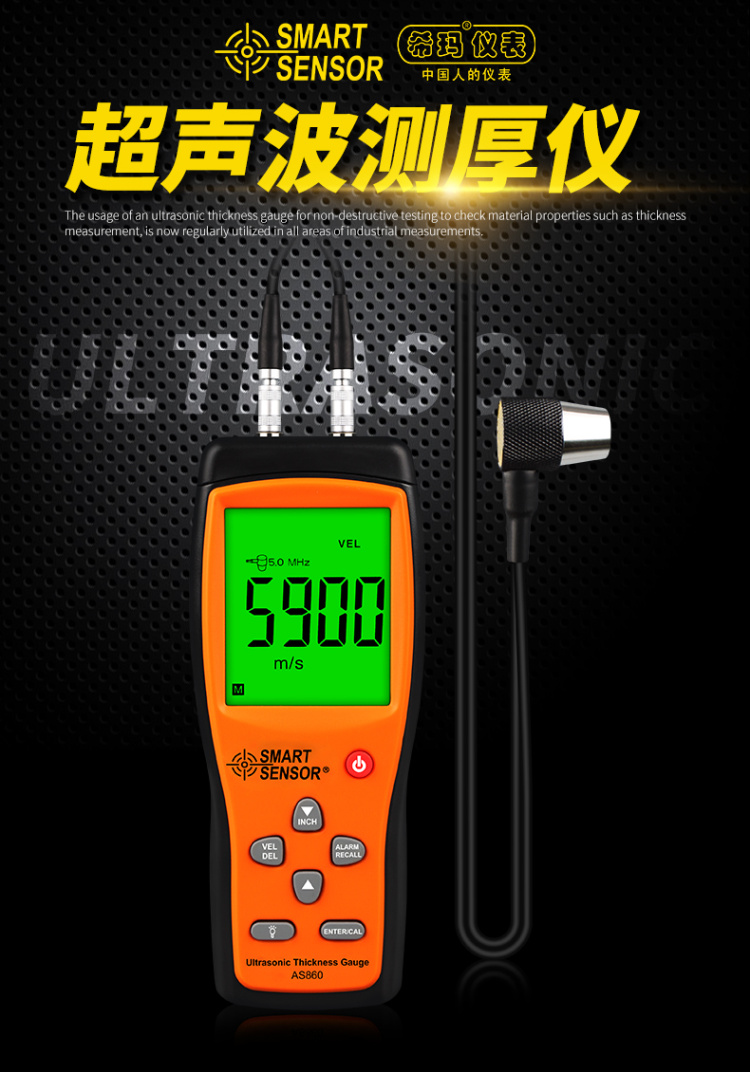 SIMA AS840 Ultrasonic Thickness Gauge is an intelligent hand-held ultrasonic Thickness Gauge , which is controlled by a microprocessor and uses the principle of ultrasonic measurement to measure the thickness and sound velocity of various materials quickly, without damage, and accurately. This instrument can be used for accurate measurement of various materials or parts in the field of industrial production. Another important aspect is that it can monitor various pipelines and pressure vessels in production equipment, and monitor their thinning after being corroded during use. degree. It can also be widely used in detection fields such as manufacturing industry, metal processing industry, and commodity inspection. All kinds of materials that can transmit ultrasonic waves at a constant speed and can distinguish the reflected waves generated on the back are suitable for this instrument.