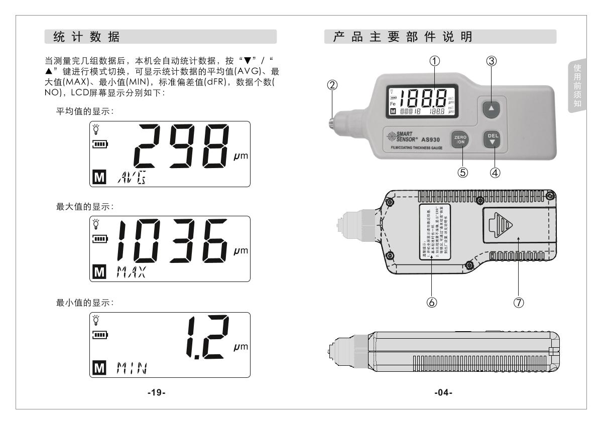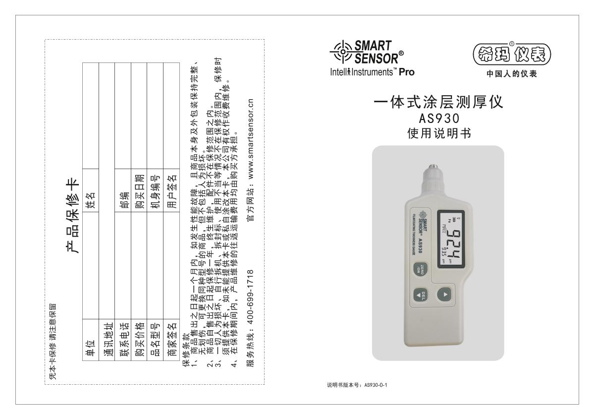 SMART SENSOR AS930 Coating Thickness Gauge Manual,OI