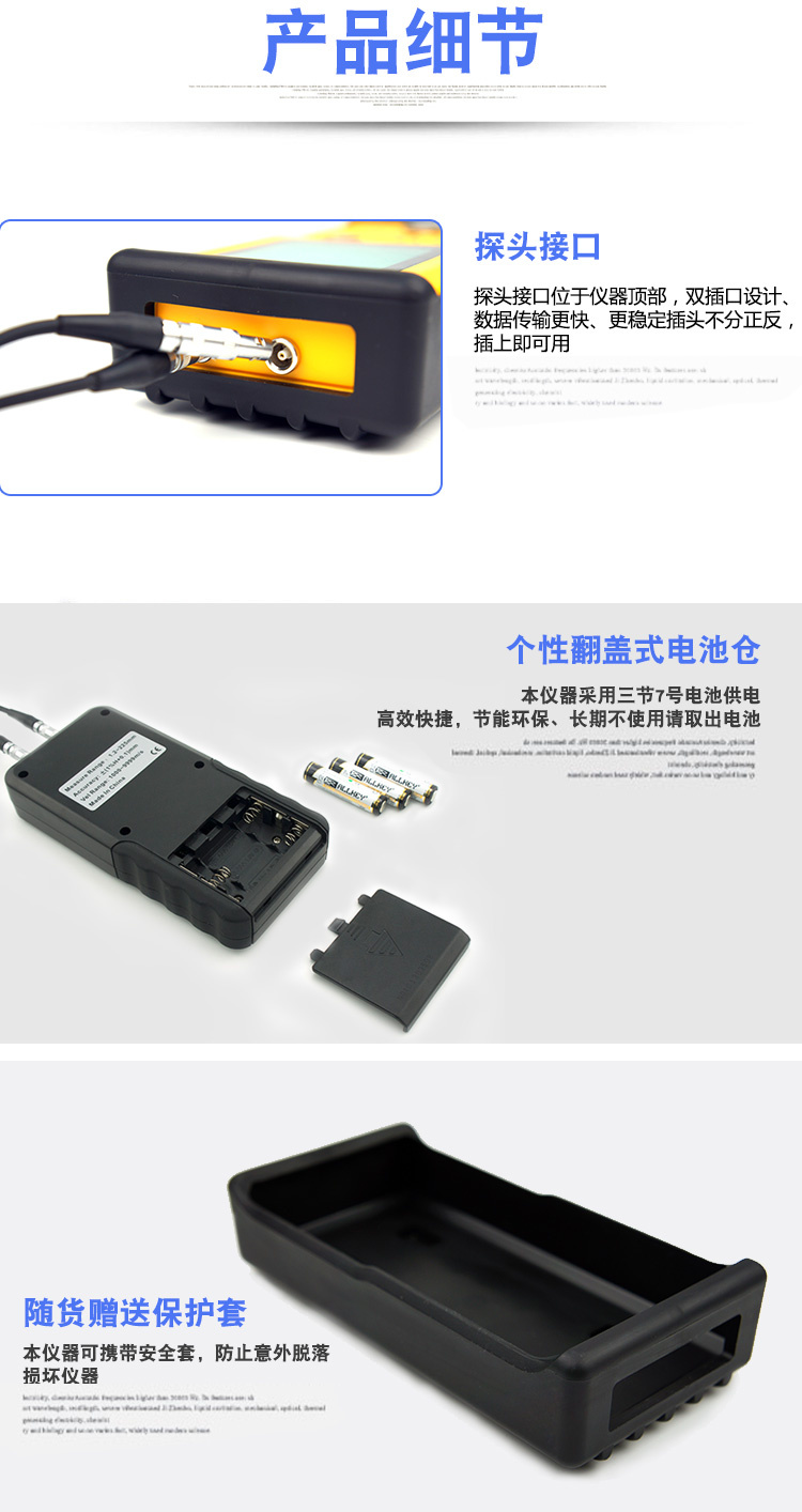 Metal, plastic, pottery paste, Joanne and any other good conductors of ultrasonic waves, as long as there are two parallel surfaces above and below, the thickness can be measured with this instrument, such as steel, aluminum, copper, gold, resin, water, glycerin, etc. .Calcium iron is not suitable for using this instrument because its internal particles are too thick!