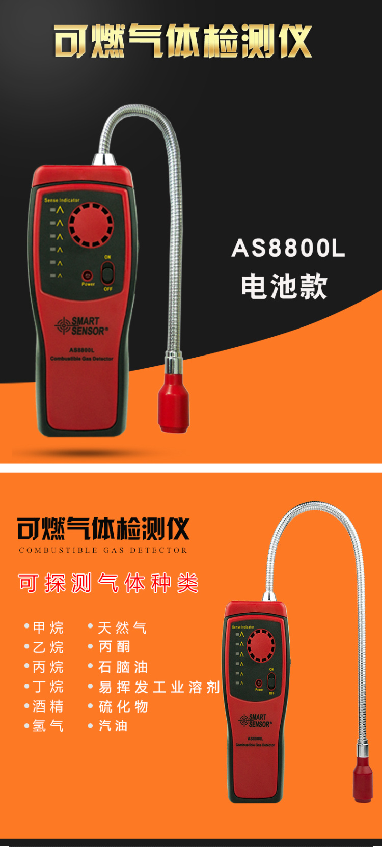 SMART SENSOR smart sensor AS8800L Combustible Gas Detector reaction time ≤ 1 second