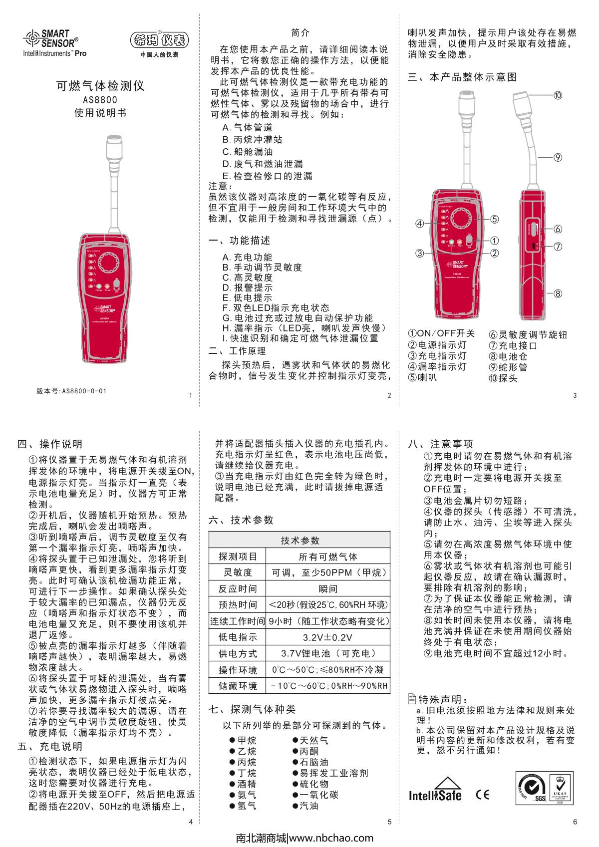 SMART SENSOR AS8800 Gas Detector Manual,OI