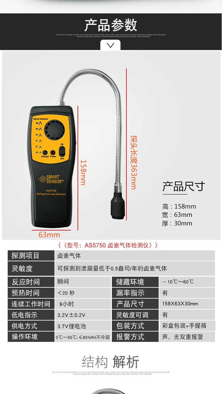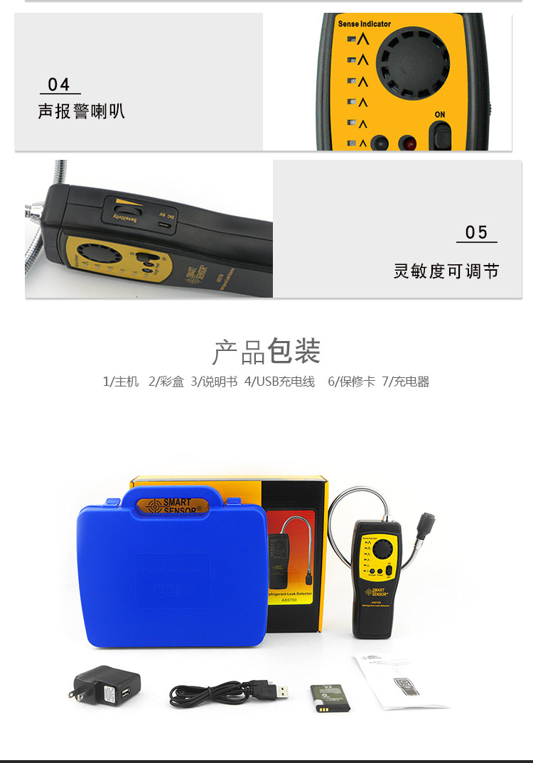 SMART SENSOR AS5750 Gas Detector halogenPacking list