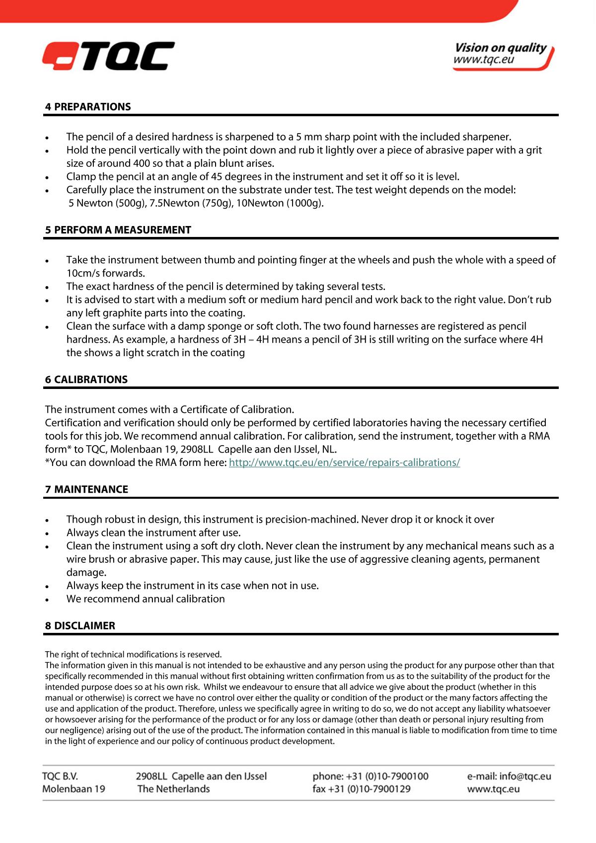TQC sheen VF2378 Pencil Hardness Tester Manual,OI